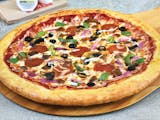 Our secret recipe pizza sauce topped with pepperoni, italian sausage, ground beef, italian salami, ham, bacon and topped with an extra amount of our special blend of 100% fresh natural cheeses.