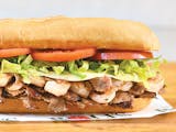 Sirloin steak meat, marinara sauce, provolone cheese, grilled green peppers, mushrooms, and onions.
